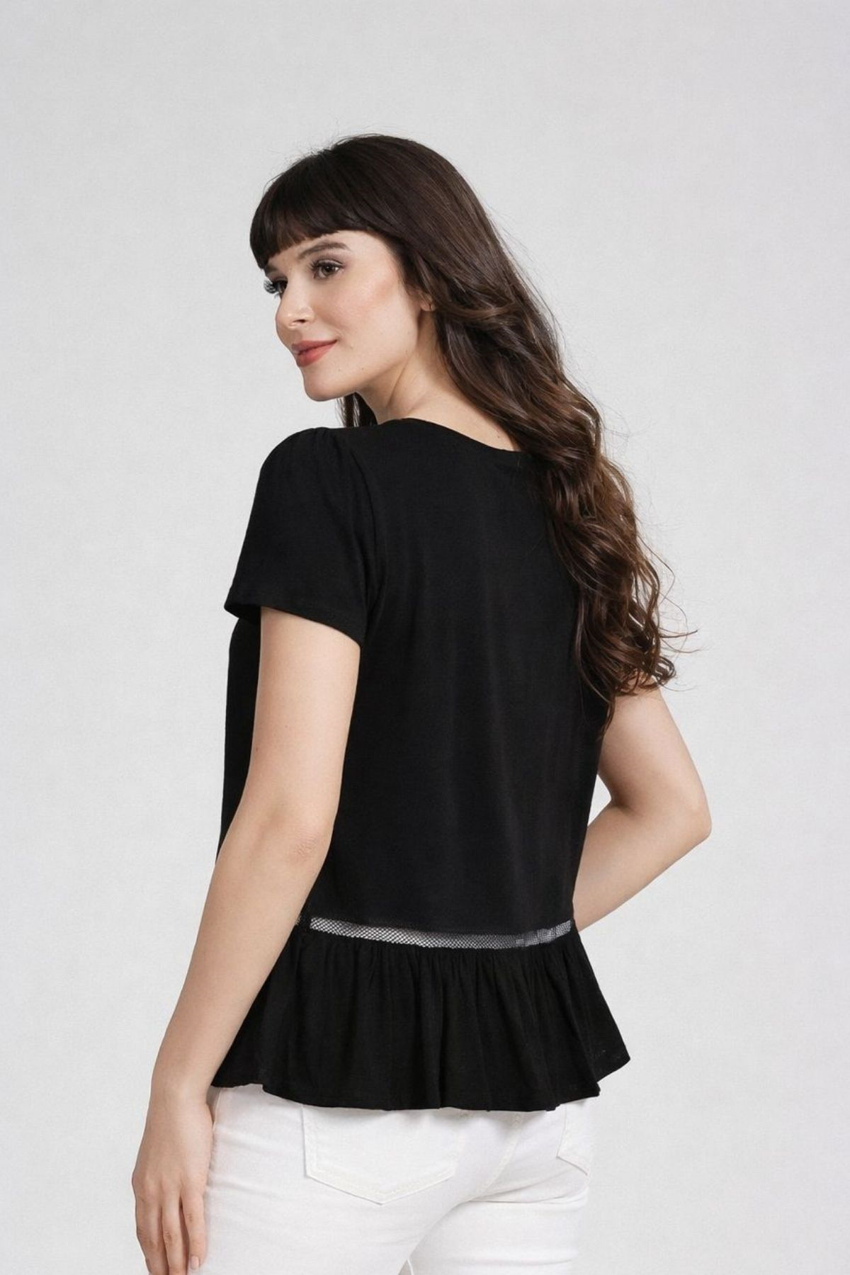 *Etek ucu fırfırlı arada dantel kombinli Kısa Kol Basic Tshirt.