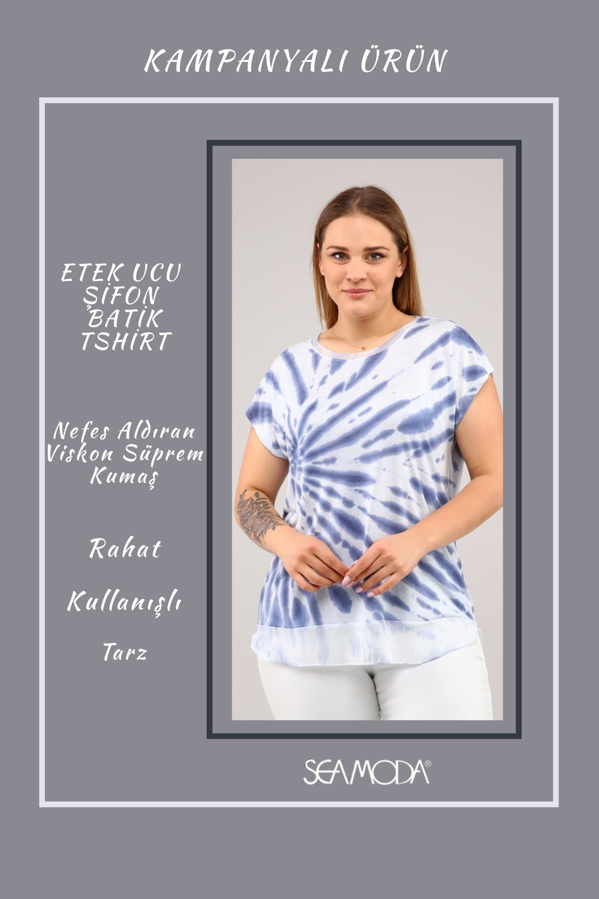 Etek Ucu Şifon Batik Tshirt-MAVİ (TS2041)